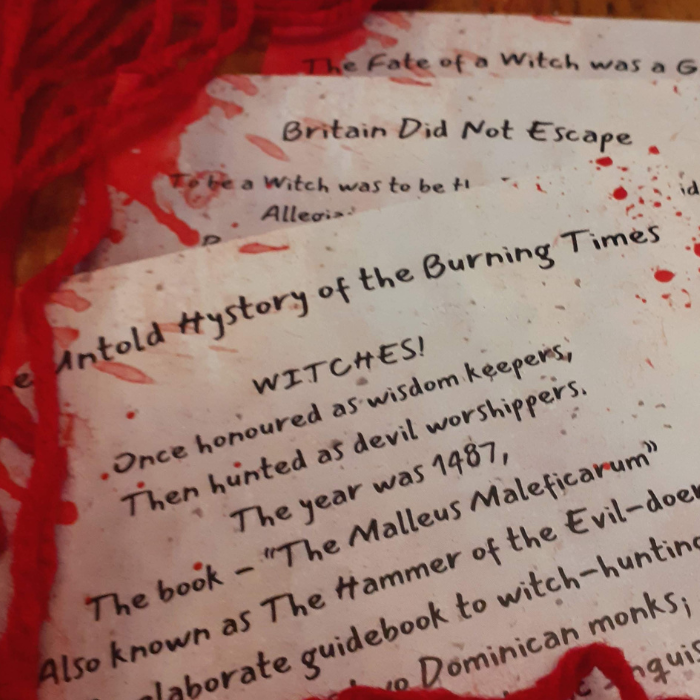Printed as a set of 5 postcards y0u'll learn how the witch hunts started, what it meant to be accused of being a witch, and how we still carry the tragic legacy, along with a vision for our collective healing.